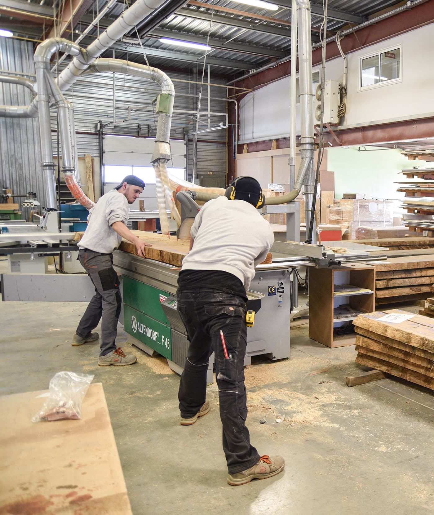 Dans un bâtiment moderne de plus de 1500m2 se côtoient machine à commande numérique et outils à mains traditionnels. Sous la direction du chef d’atelier, chaque étape de votre projet est confiée à des menuisiers qualifiés, des opérateurs sur commande numérique, des monteurs, des vernisseurs… Une kyrielle de compétences pour répondre à toutes les envies.